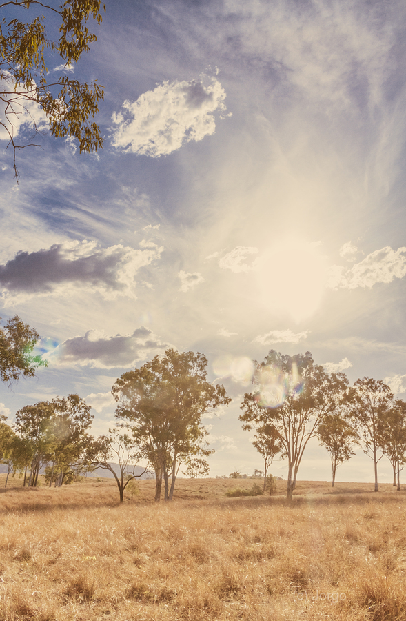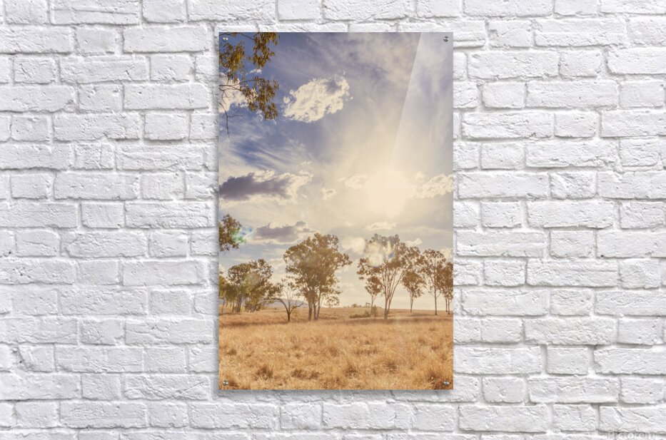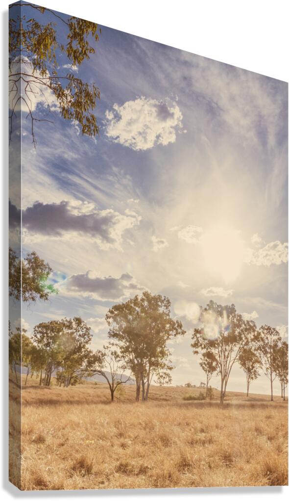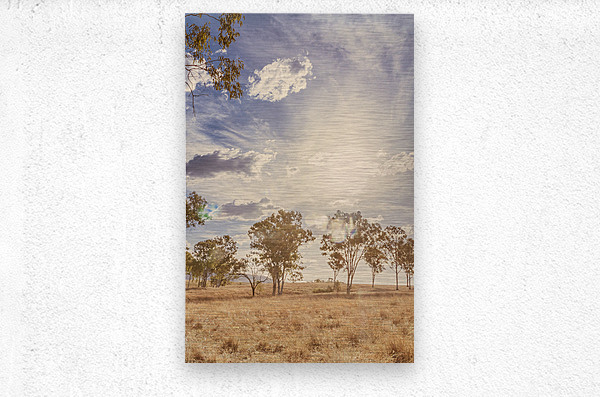 A harmonious vertical landscape on a sunlit field of muted Australian scrub with arid aesthetics and calming sentiments. New Moonta Queensland Australia