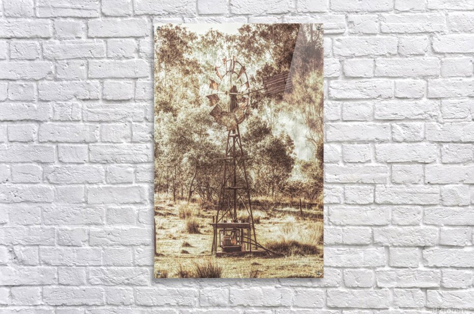 A piece of timeworn history with the focus on a forgotten farmstead windmill rotating before the smouldering of a country bush burn-off. Black Horse C...[+]