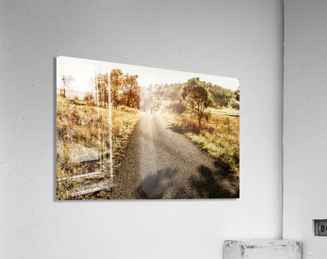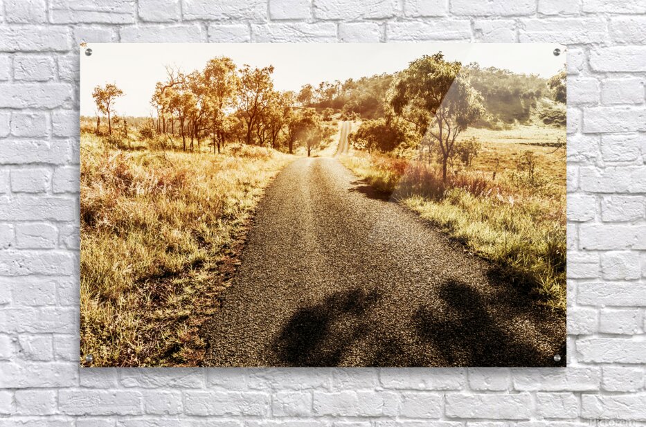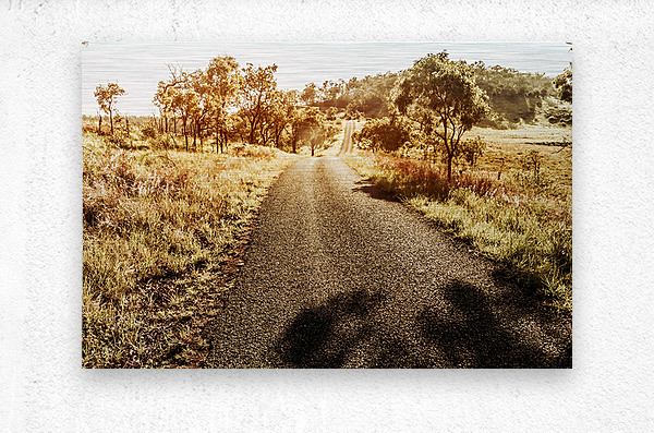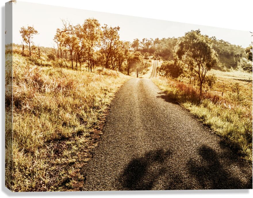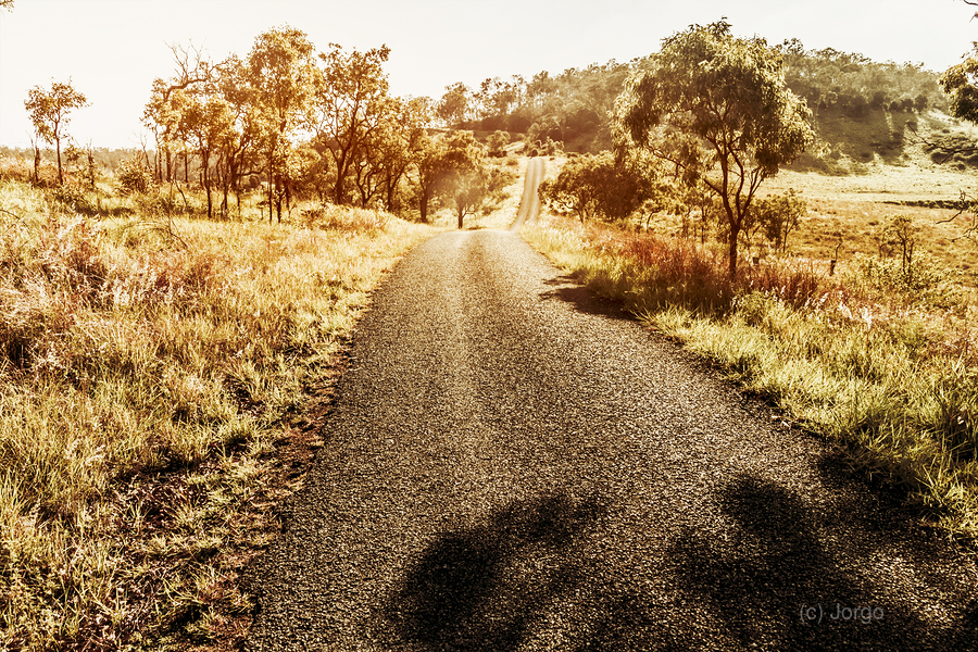 Quiet summer escape with a hilly road leading through late country light in rural outback splendour. Top Gurgeena Rd Branch Creek Queensland Australia
