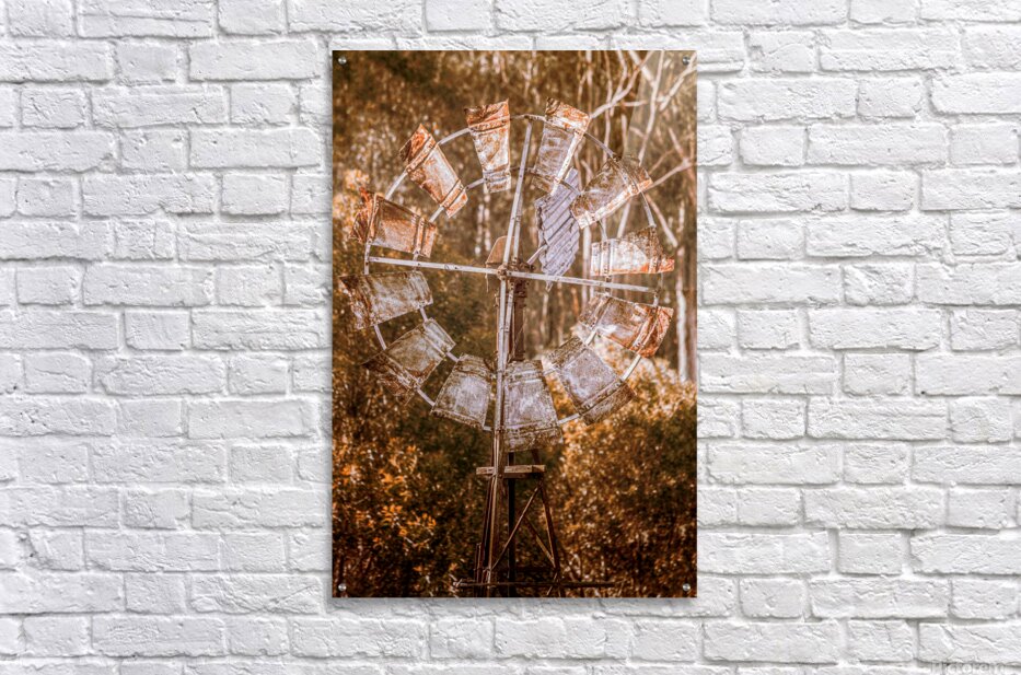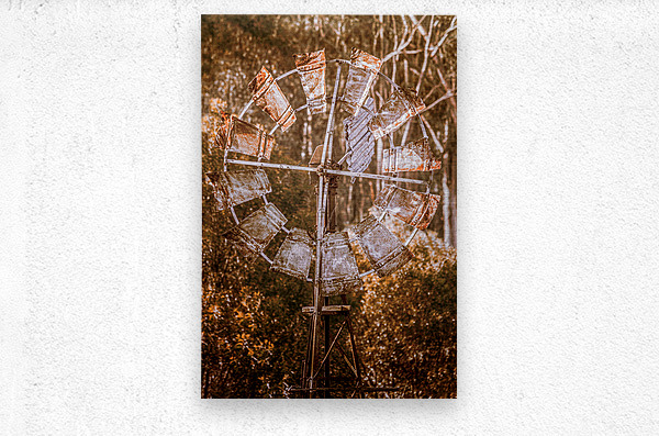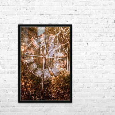 Weathered and worn the blades of a ranching windmill spin in shades of autumns rust. Black Horse Creek Rd Branch Creek Nour Nour National Park Queensl...[+]