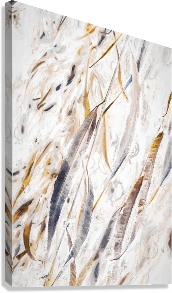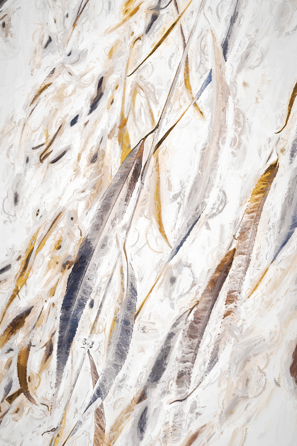 Artistic nature design on a subtle scene of gentle Weeping Willow leaves floating on watercolour esque washes of modernity