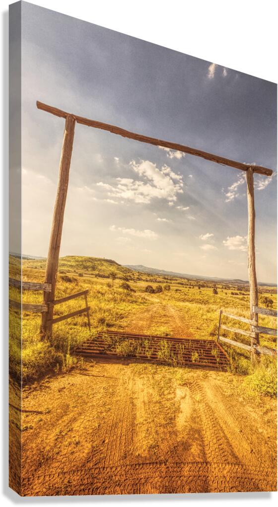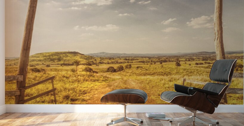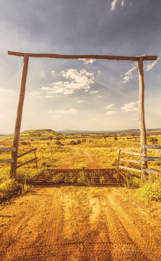 An outback outlook of country colours and provincial framing with gates and grates overlooking countryfied farmland. Photographed: Top Gurgeena Rd Branch Creek Queensland Australia