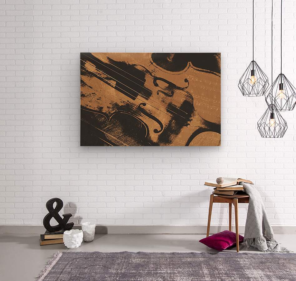 A wooden performance of classical play with musical notes and fiddles in rehearsed abstract