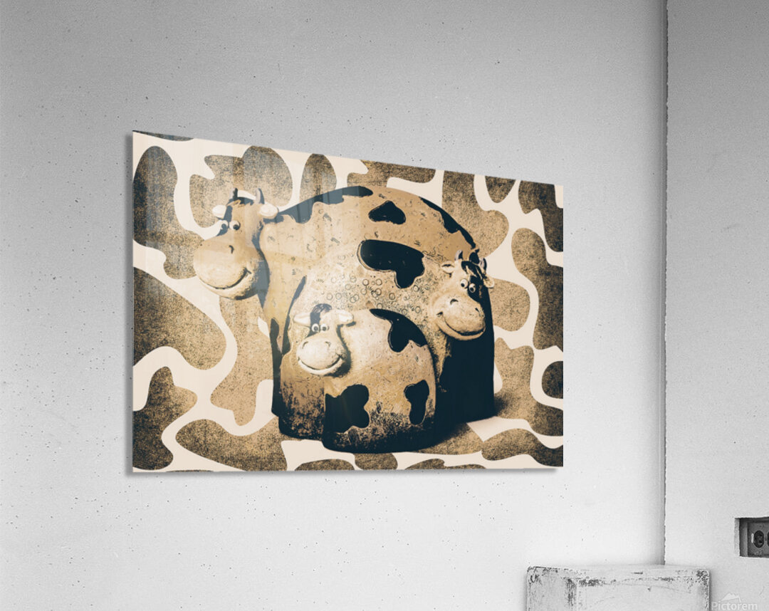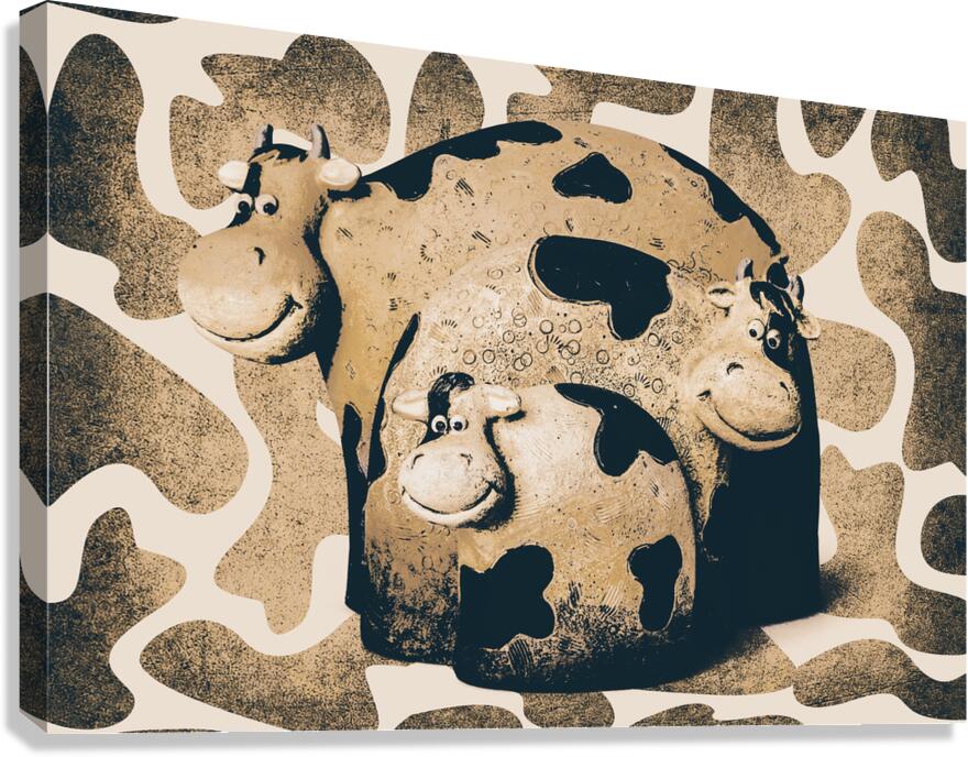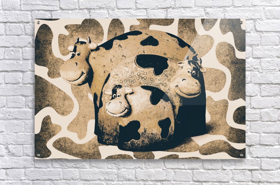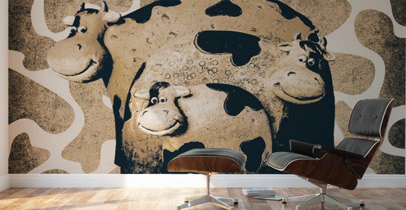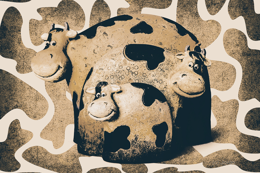 Cute collection of cows decorating a ranching scene of whimsical farming spots and blots
