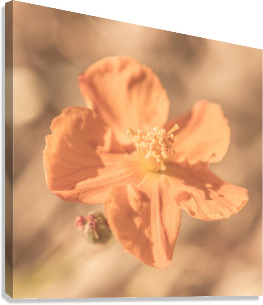 A peach toned macro photo on the head of a pretty small St. Johns Wort flower bud Hypericum Gramineum captured in low DOF macro. Taken: Mount Perry Queensland Australia