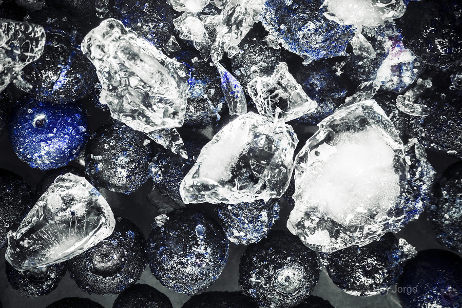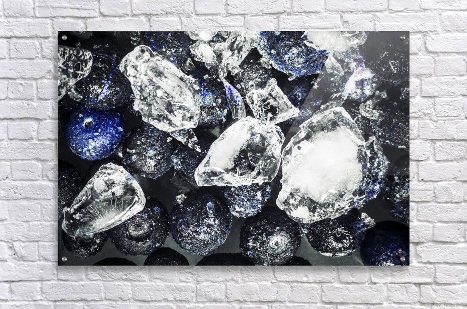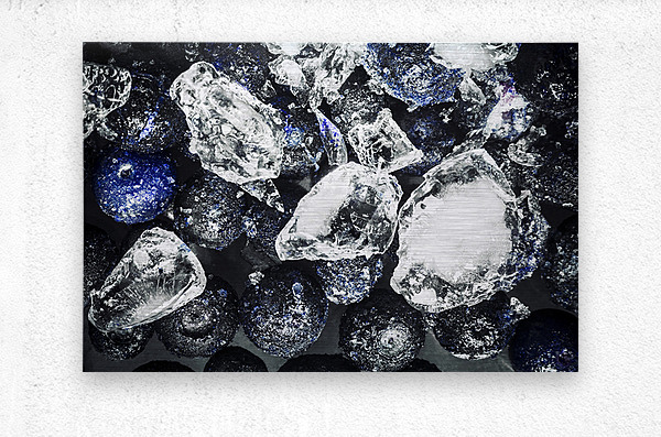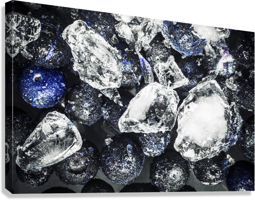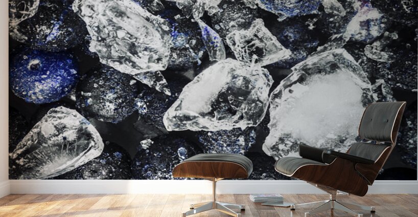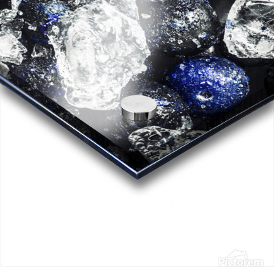 Delicious display of cool drinks in the making with frozen blueberries and ice in a dark dynamic horizontal photograph