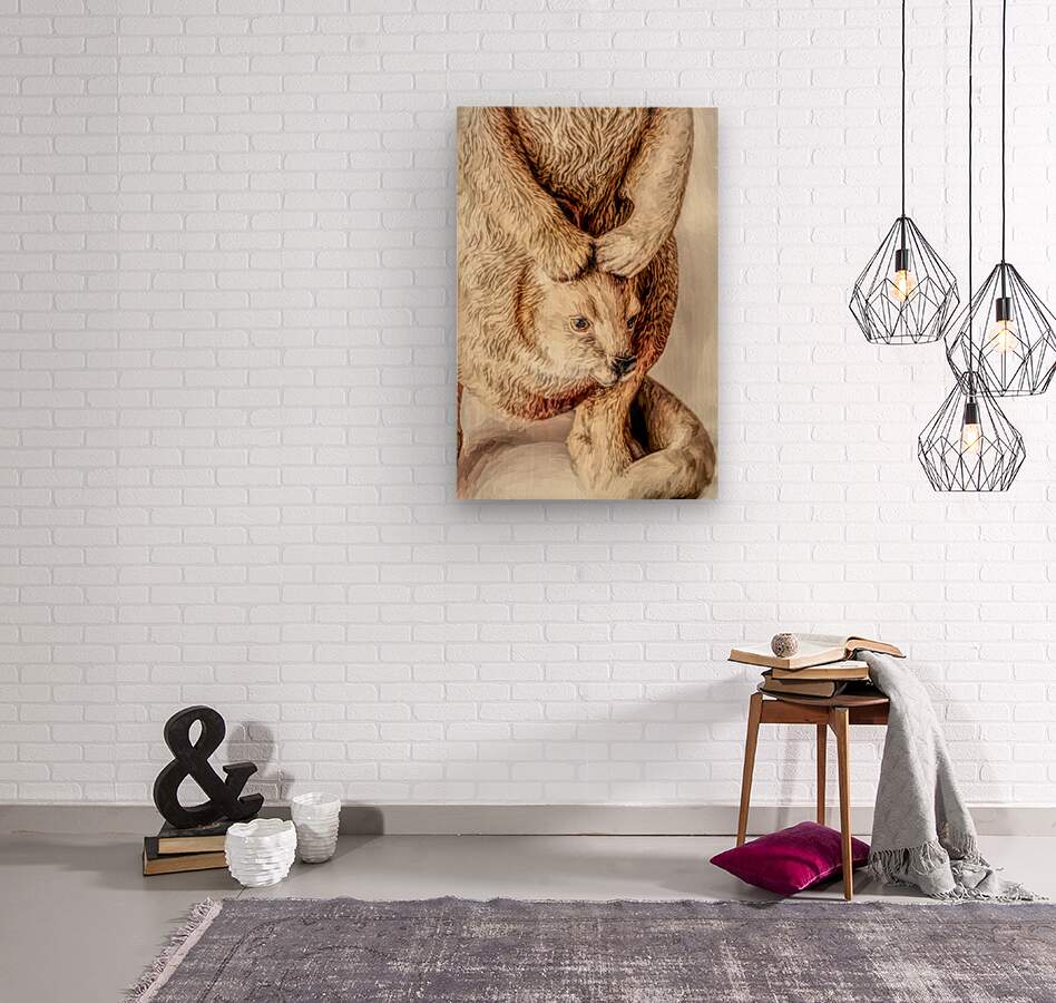 Closeup artwork on a baby Joey resting in mothers pouch in rustic country calm styling