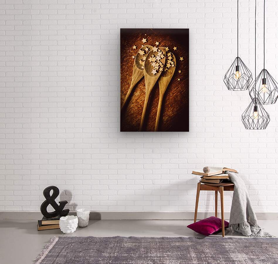 Creative hospitality still life art on bakery spoons stirring a star speckled award winning dish. Review in the baking