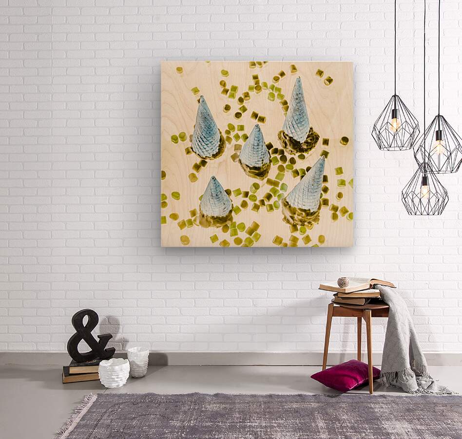 Fine art ice creamery scene of blueberry cones and chocolate ice cream. Desserted