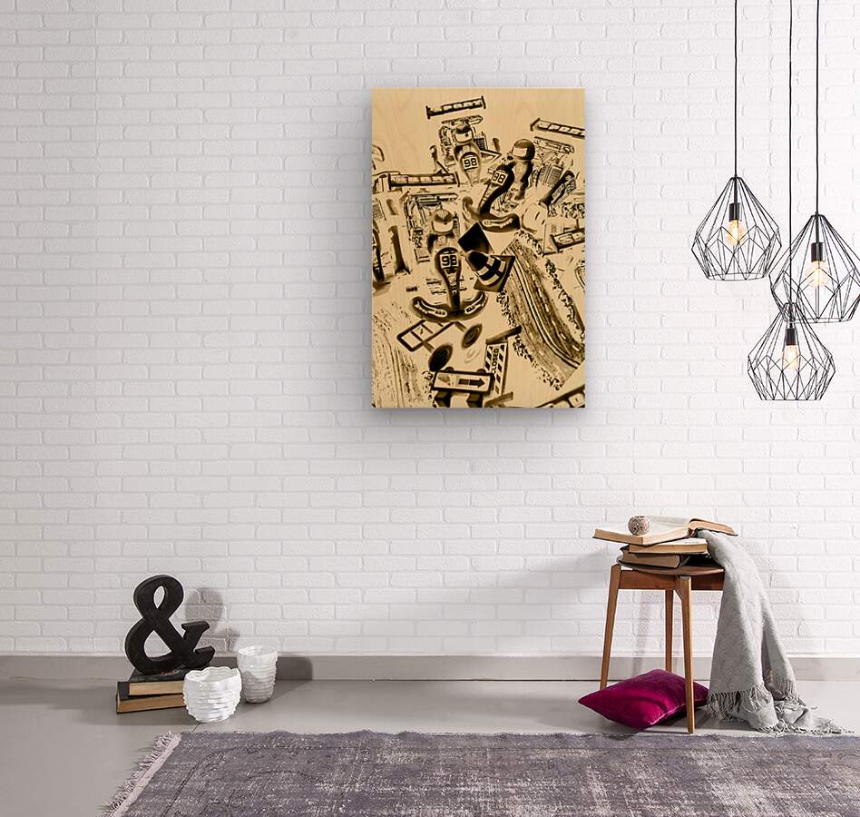 Sepia stylised racing art on a raceway of go karts battling track terrain. Need for sepia