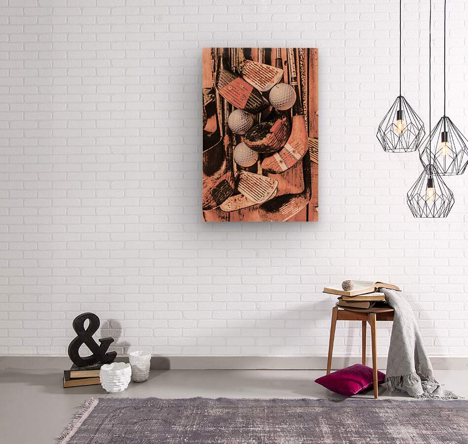 Vintage golfing abstract on a well played set of golf ball and clubs in creative competitive composition