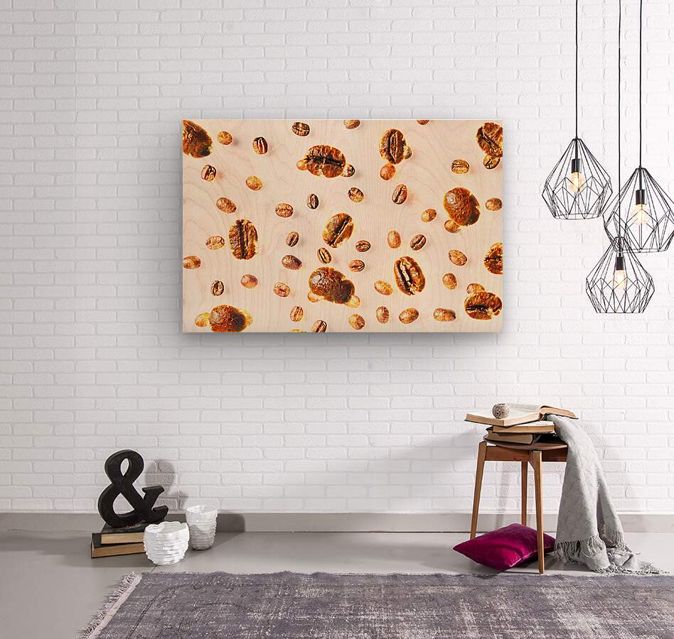 Fiery inferno of flaming coffee beans roasting in motion on contemporary whites