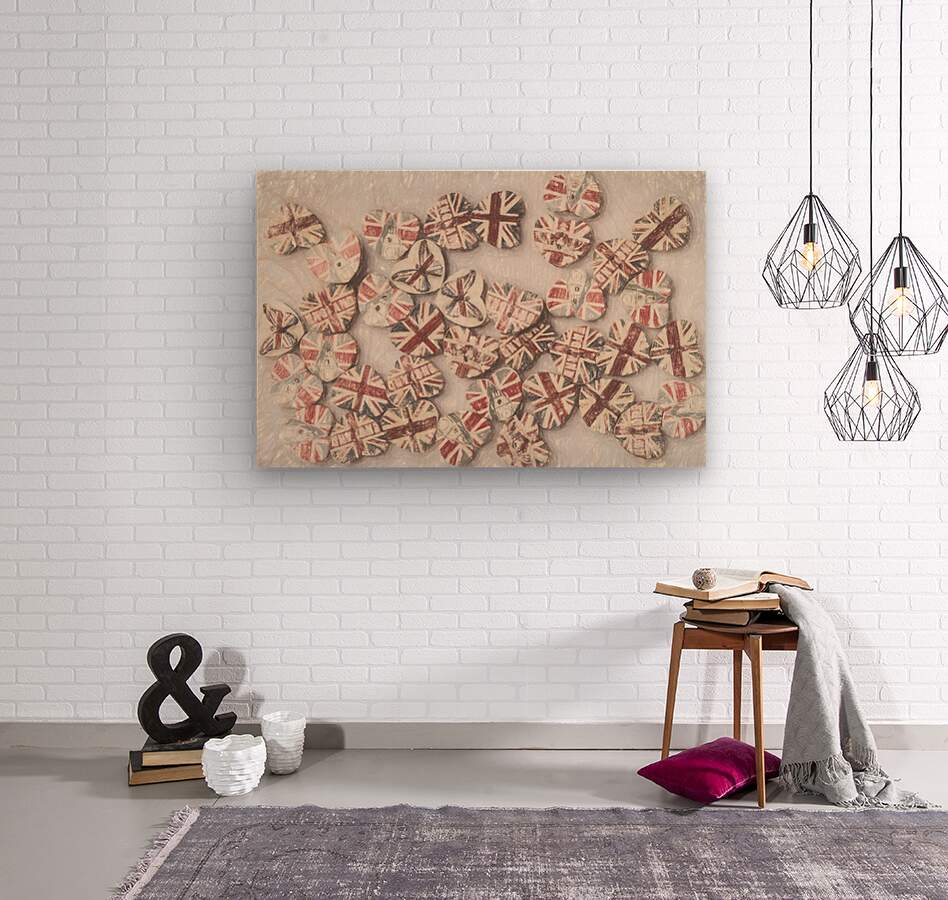 Fine art design on a scattering of sentimental union jack hearts joined in a united kingdom. Photo with illustration filter. Not AI