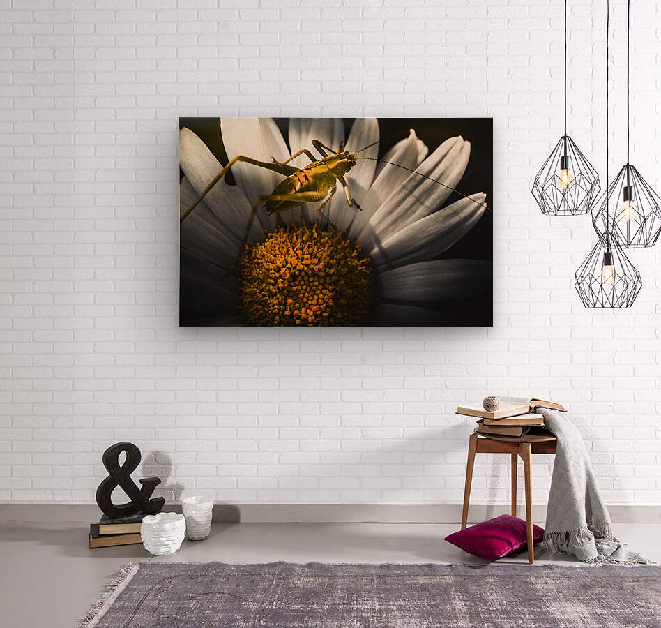 SUR CETTE OEUVRE: AUSTRALIAN GRASSHOPPER ON FLOWERS. SPRING CONCEPT
