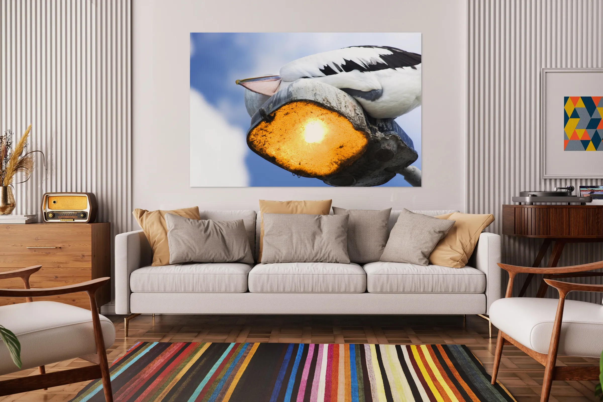 A Pelican Takes A Summertime Nap On A Illuminated Light Post During Summer Break