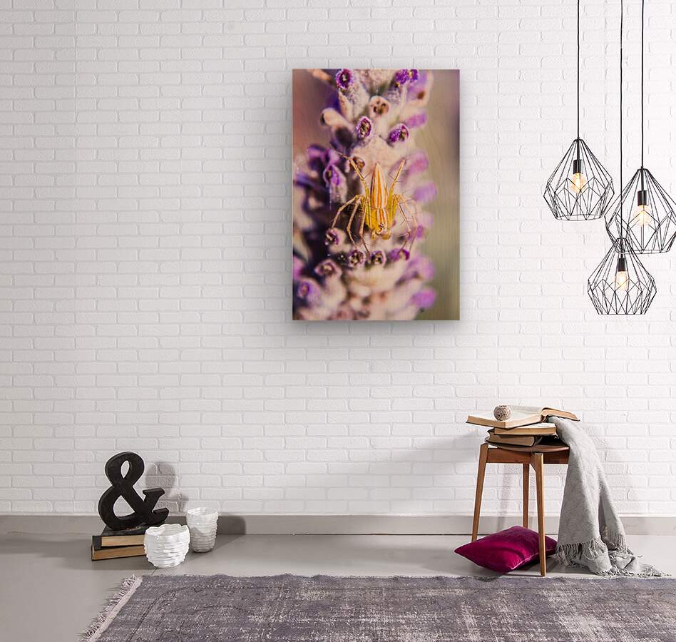 Macro insect artwork on a tiny Jumping Spider Mopsus Mormon on lavender head
