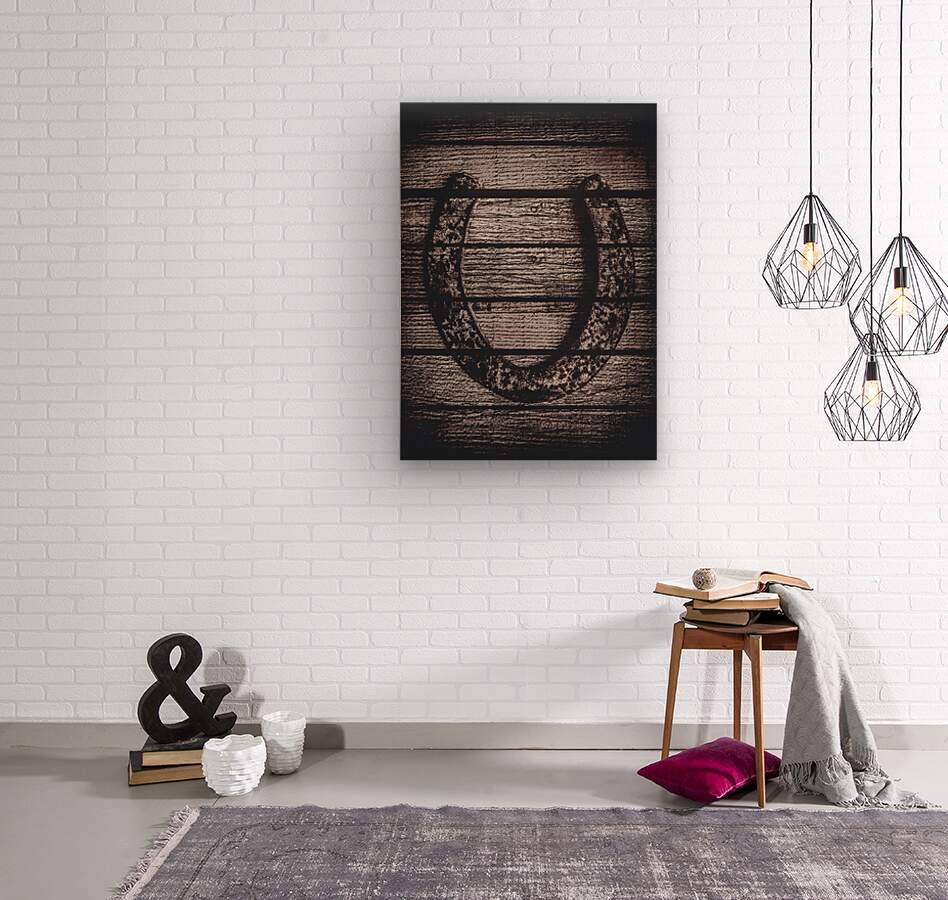 A weathered horseshoe lies against a backdrop of aged wooden planks evoking a rustic and charming atmosphere in muted tones