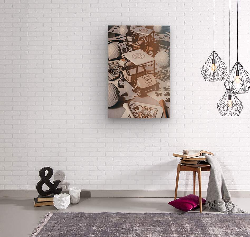 Golf card cart with a small playoff of table gaming complete with winning playing hands and tees and balls