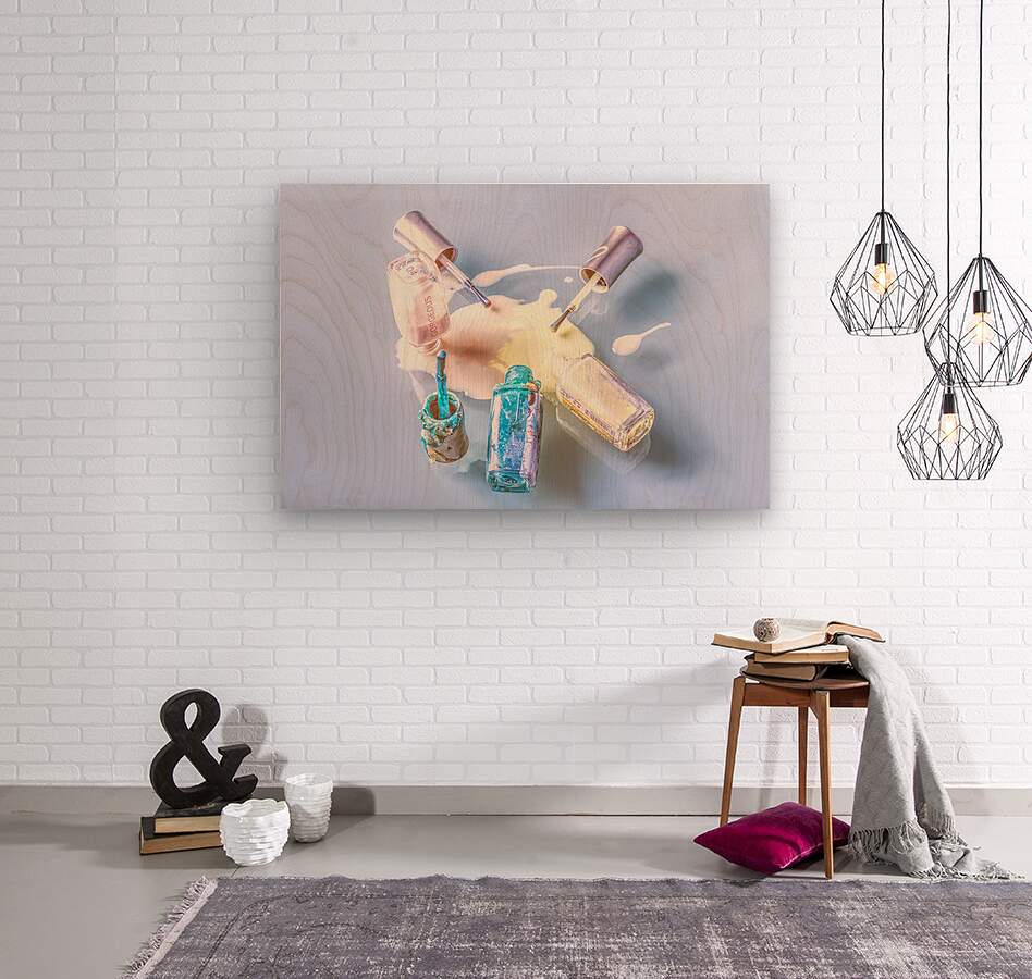 A sparring of colour as pallets of pastel mix in a puddle pour of nail paint polished on glass