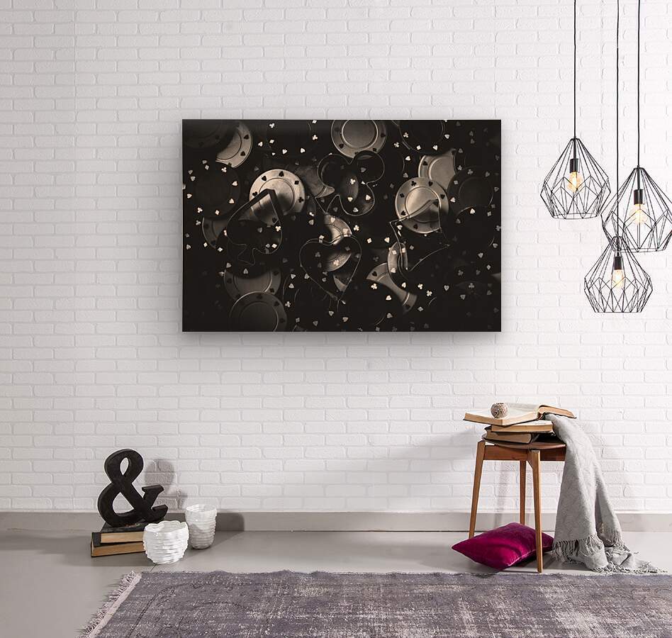 Table and gaming in a black and white playout of poker chips and playing cards. Just Ace