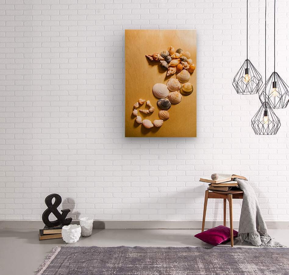 Creative still life composition with a gathering of sea shells combined to form the abstract appearance of a marine seahorse