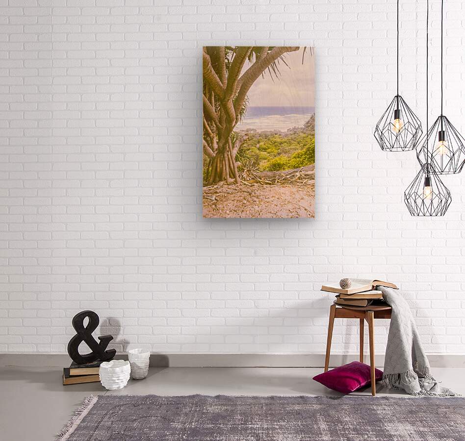 Peaceful beach art with foreground palm framing a scene in pure escapism. Captured: Frenchmans Beach Point Lookout North Stradbroke Island Queensland ...[+]
