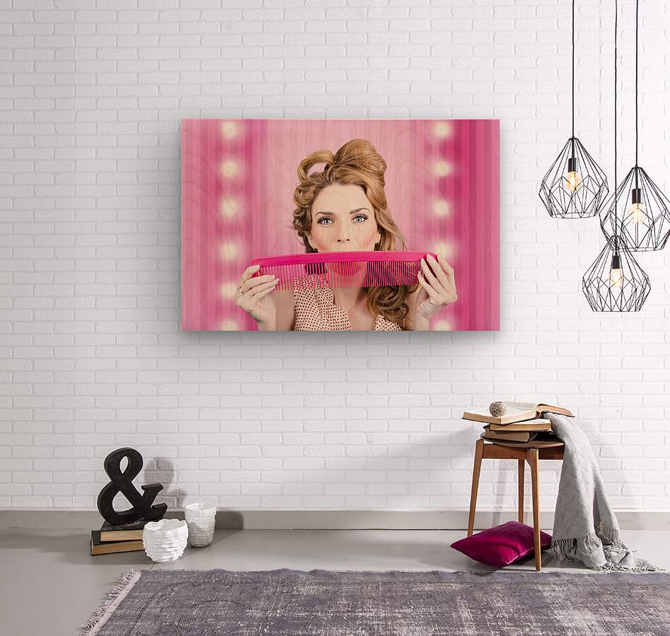 Funny hairdresser with cute hairdo. Pin up haircut Frame print