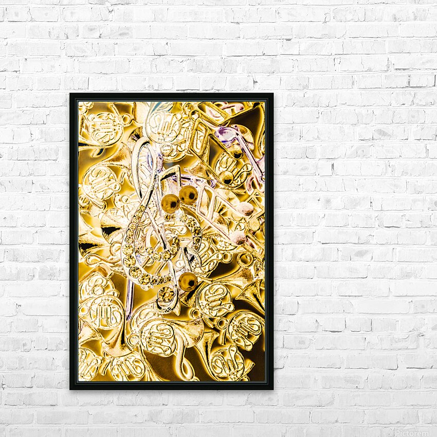 Disco and dance in a fine art composition of diamond treble clefs and golden classical harmonies. Club of staffs