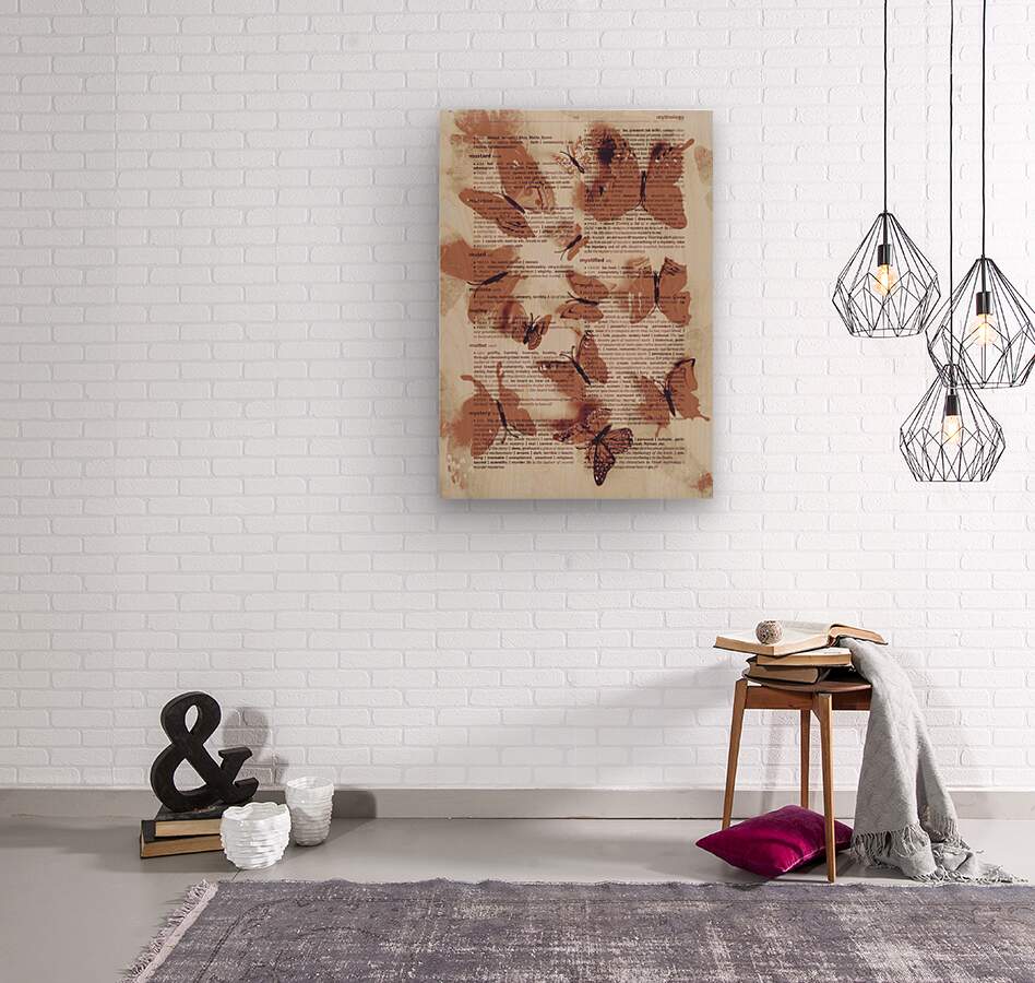 Fine art design on a collage of old ornate butterflies on vintage textbook overlay. Exotic scripts