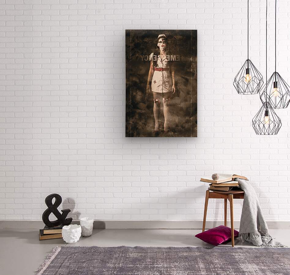 Insane emergency room nurse at ER glass doors Jorgo Puzzle printing