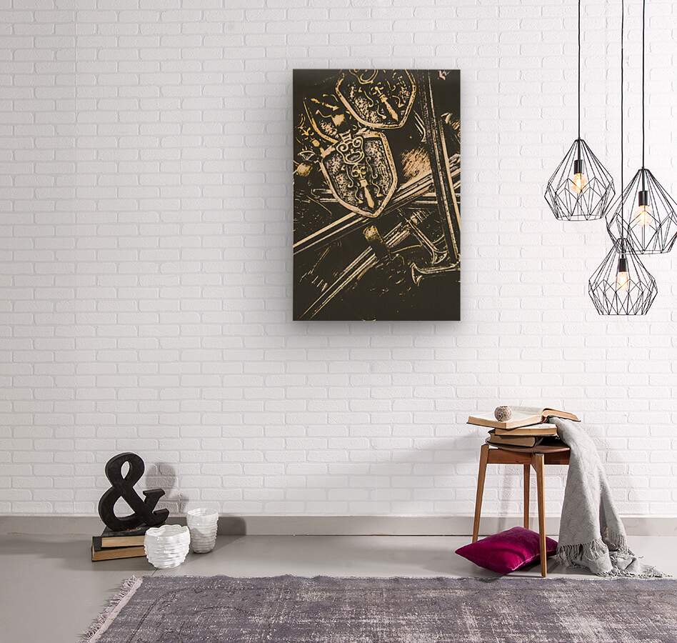 Fine art scene on a host of historic medieval weapons from ancient battles of nobility