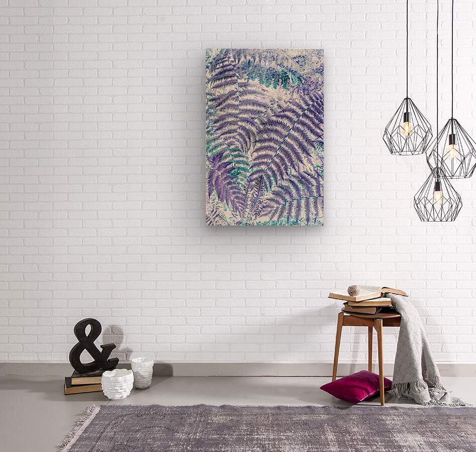 Tropical pop art on a vibrant blue and purple fern frond abstract in creative inverse