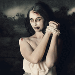 ABOUT THIS ARTWORK: DARK HORROR SCENE OF AN EVIL ZOMBIE WOMAN TIED UP