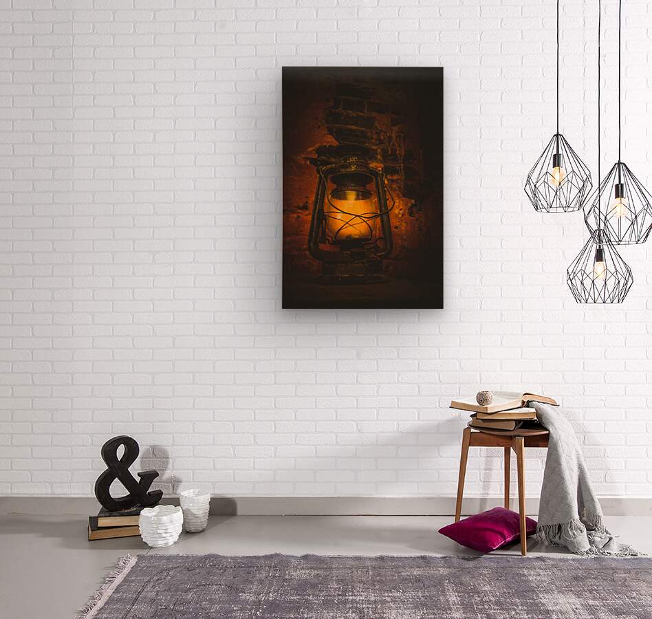 Warm glowing still-life scene on a colonial lantern in bricked out darkness