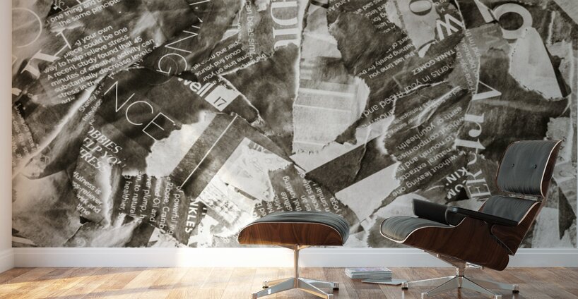 Old world in media and journalism with peeling poster cuttings from torn press typesetting. Press print parchment