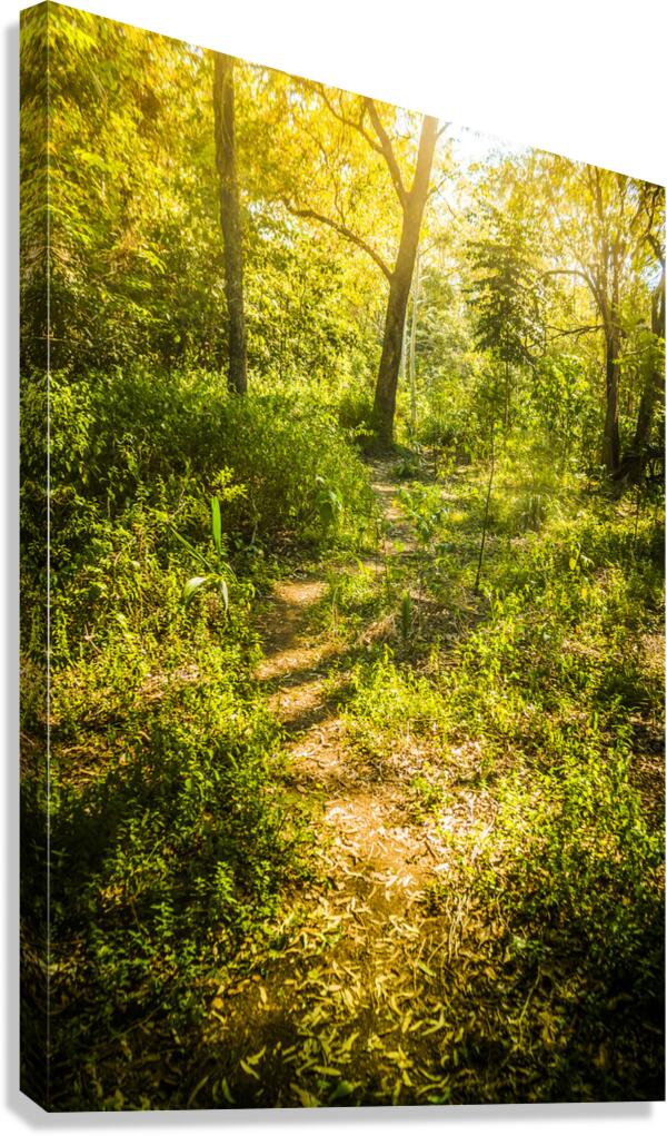 Picturesque path leading through forestry green with sunlight goldens in majestic light. Murrumba Down Queensland Australia