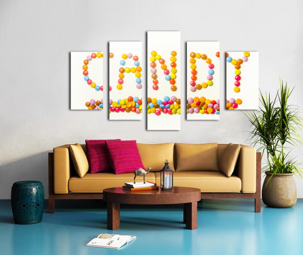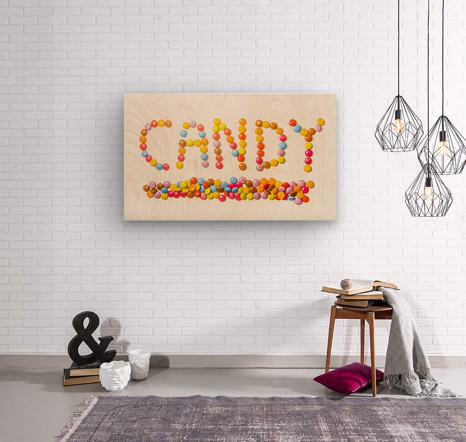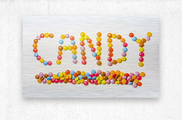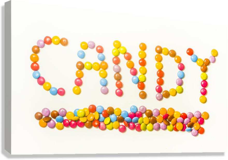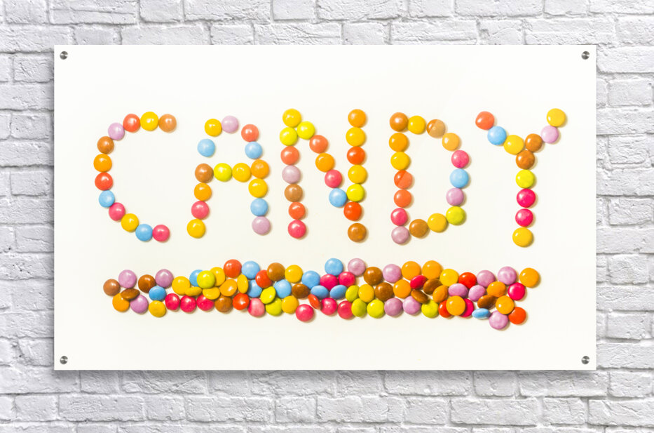Contemporary candy bar sign spelling out sweet words of colorful composition