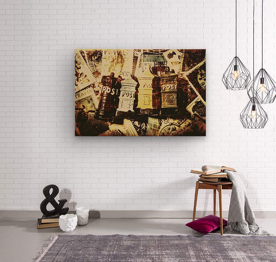 Antique fine art on a mix of old post boxes with rustic texture and traditional stamp icons. The vintage postage card