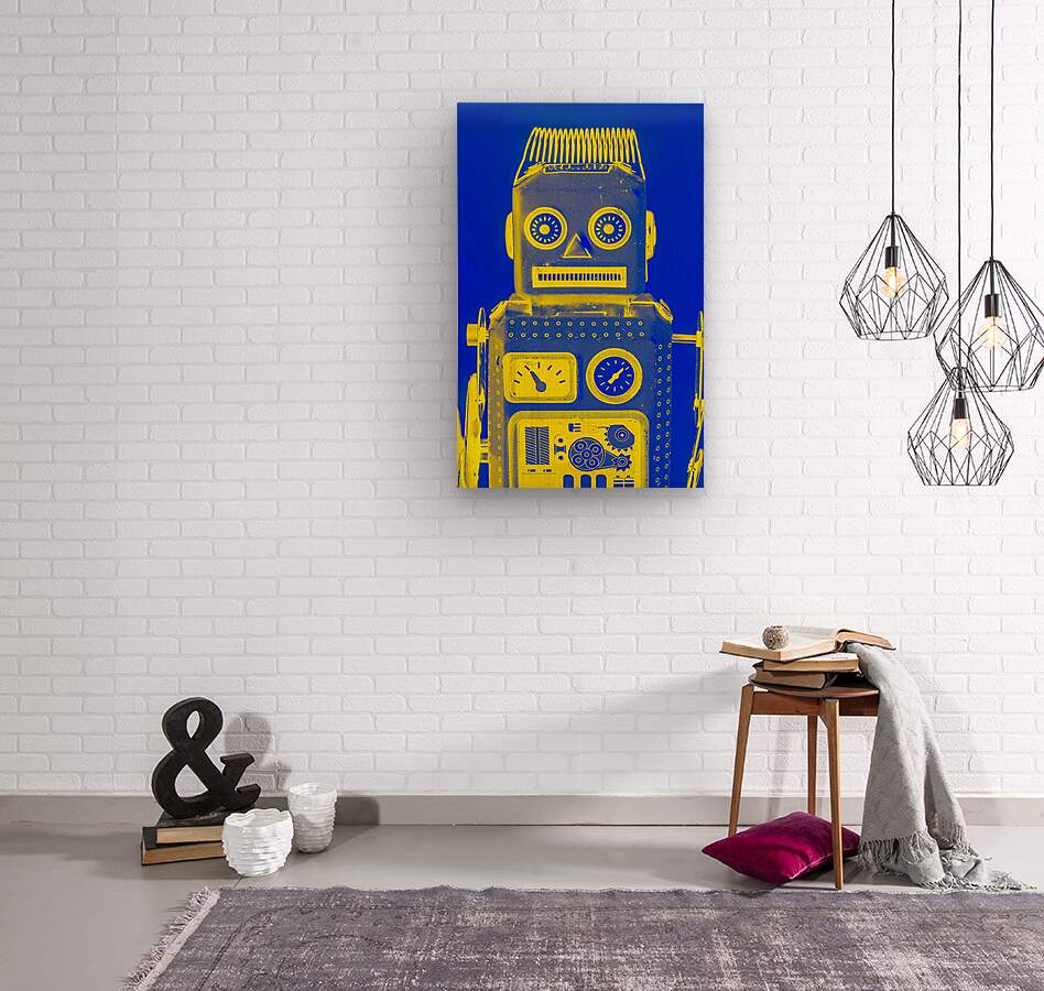 Comic styled photo on a glowing electric robot in retro tones of cross-processing