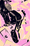 Retro stylised photo on a posterised scene of roadhouse nostalgia with custom bikes in customised colours