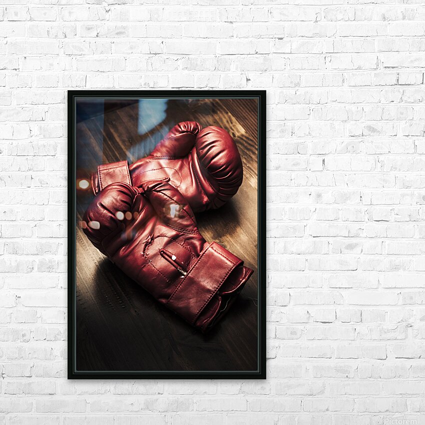 Retro red boxing gloves on wooden training bench Picture Frame Printing