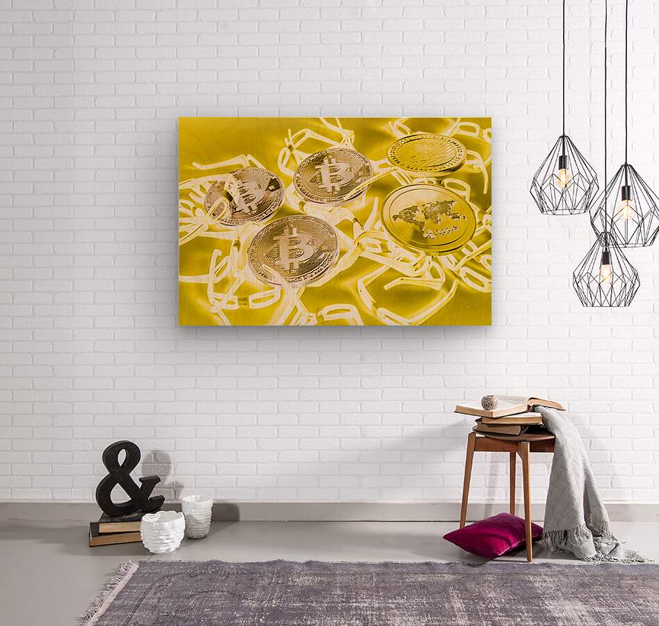 Fine art still-life on a golden monetary policy of smart programming with designer glasses and gold coins. Digital development