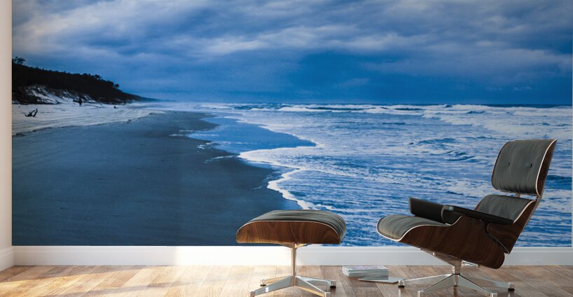 Atmospheric landscape art on a stormy seafront of dark skies and vibrant coastline waters. Captured: Amity North Stradbroke Island Queensland Australia