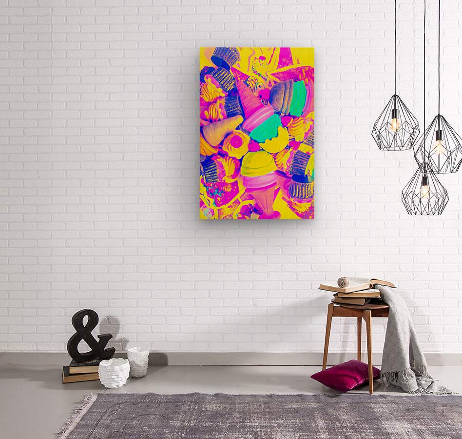 Retro revival in a pop art ice cream scene with scattered delicatessens from sweet summer dreams