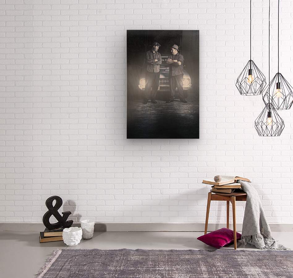 Get this artwork "2 male gangsters meeting in dark alleyway" in a framed print.