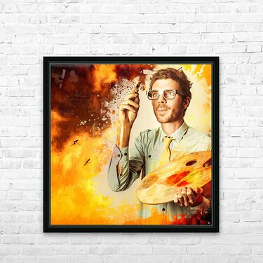 Visual fine art student painting an oil artwork Frame print