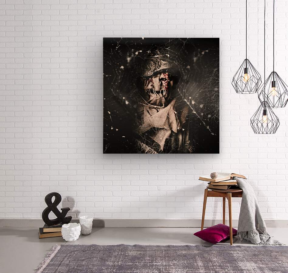 Creeping in the dark shadows a cruel evil entity watches from hanging spider webs. The monster scarecrow