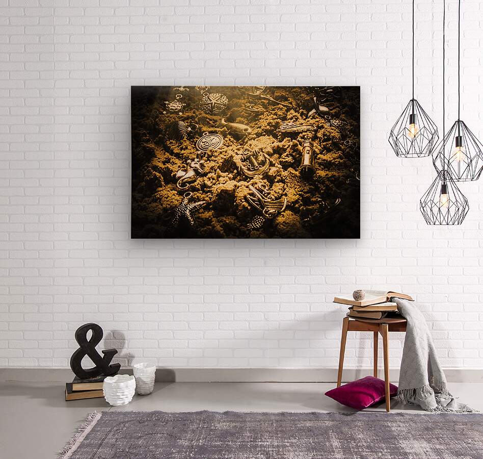 Creative seaside charms placed in artistic style on a sandy seabed