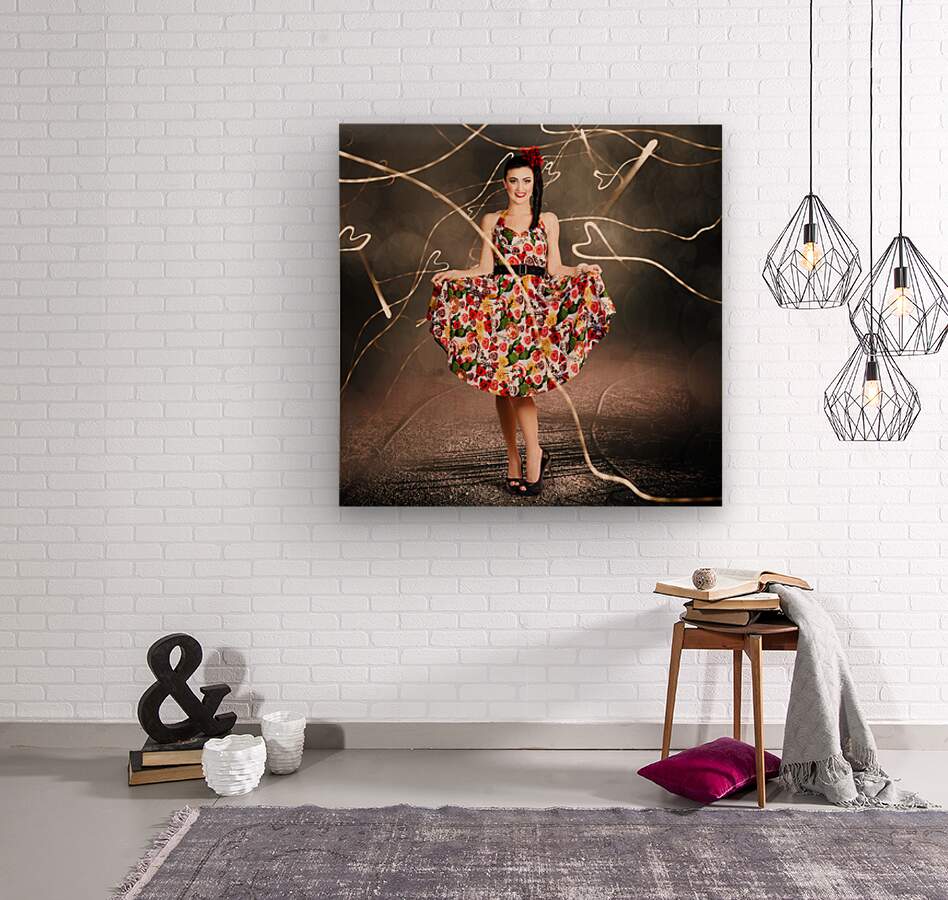 ABOUT THIS ARTWORK: WOMAN DANCING IN COLORFUL FLORAL DRESS OUTDOOR
