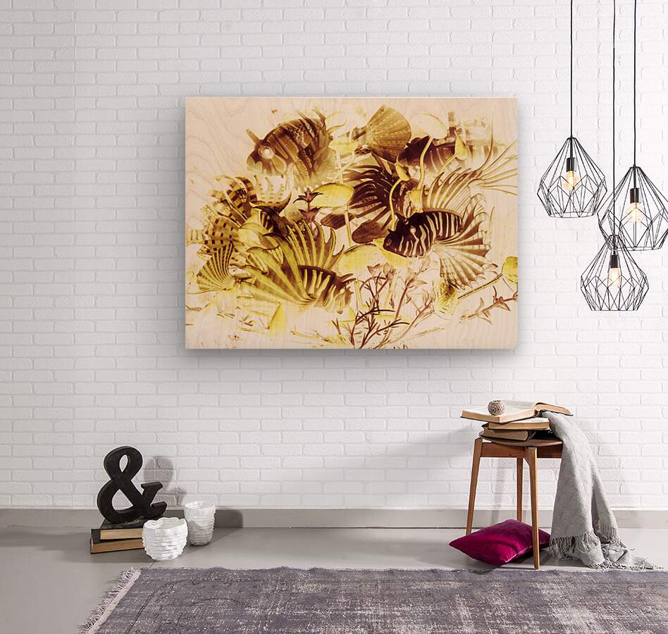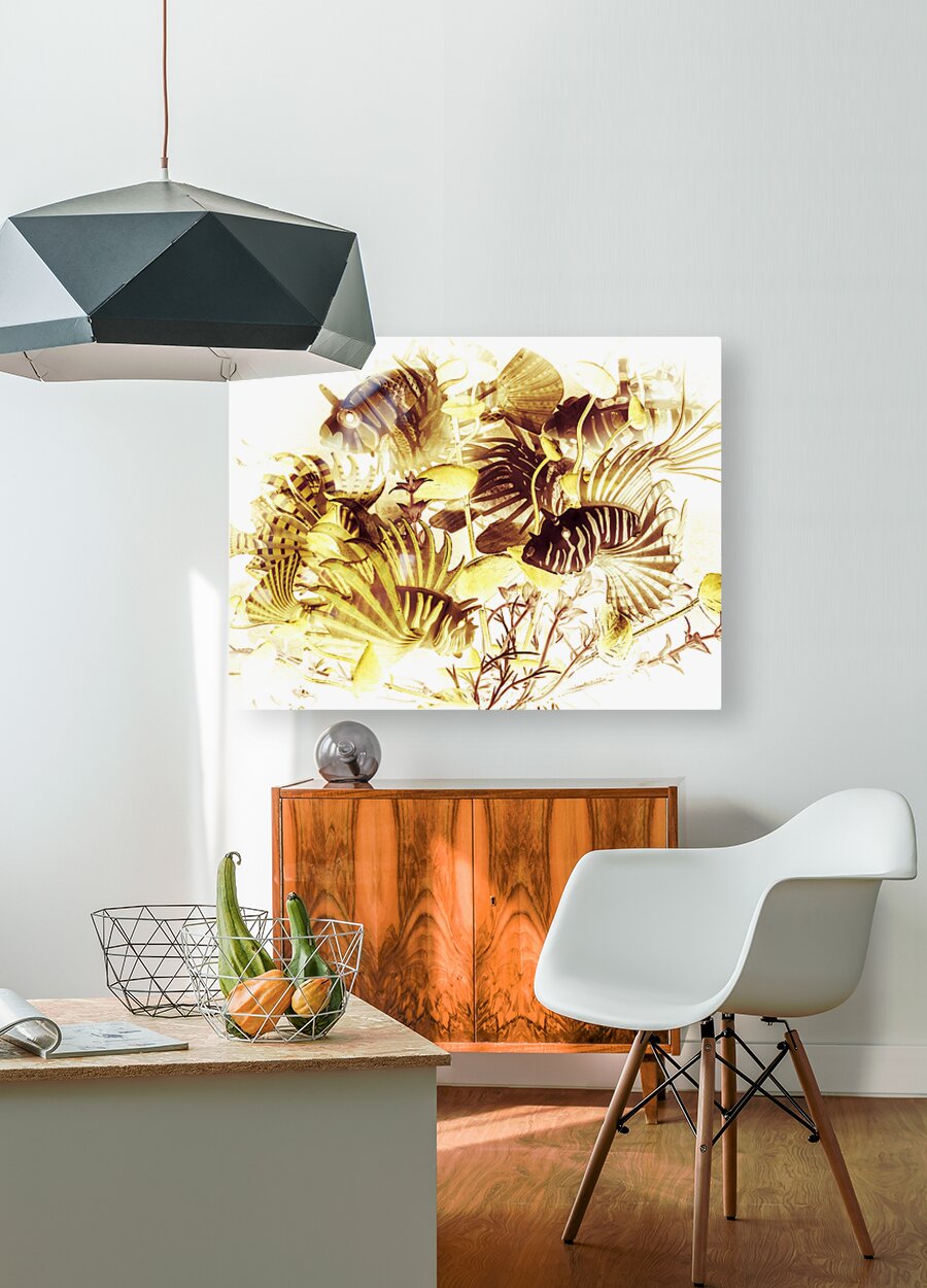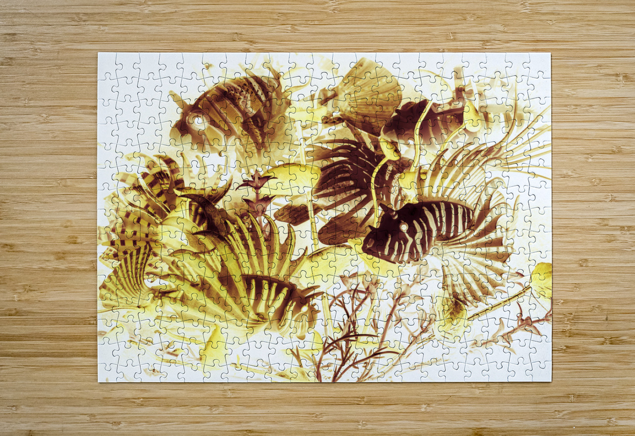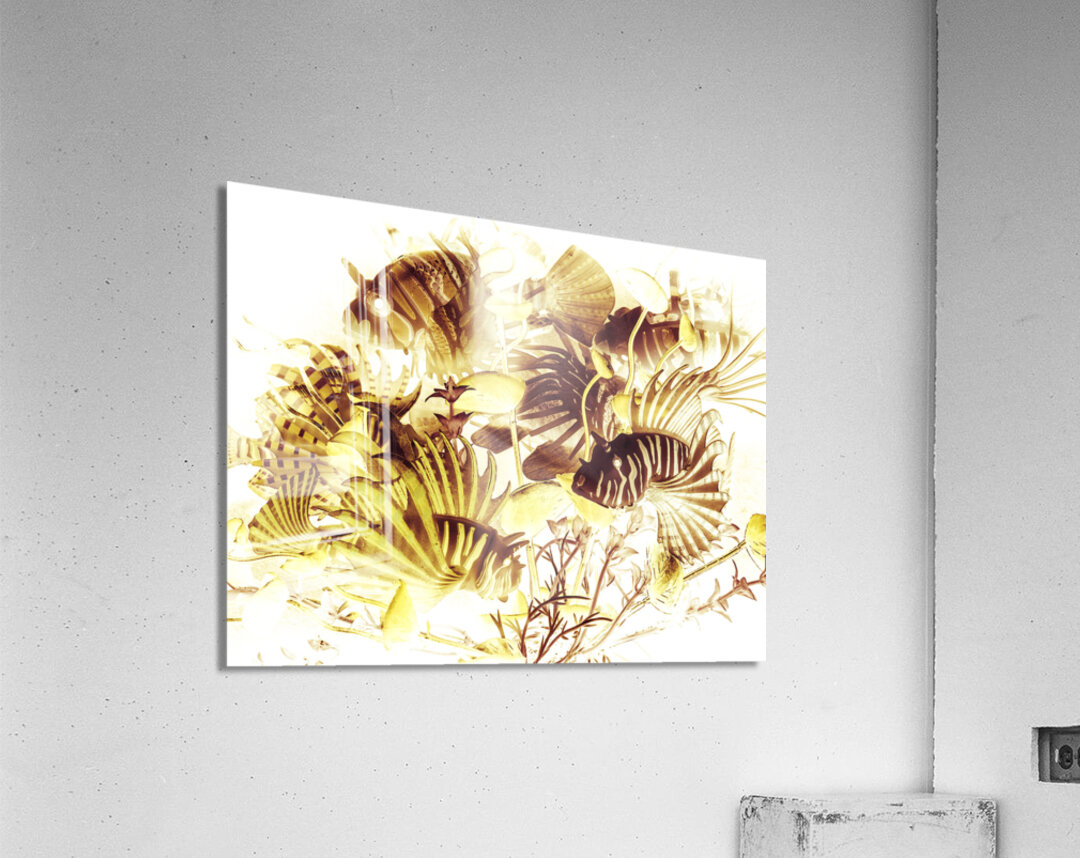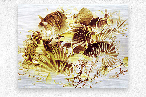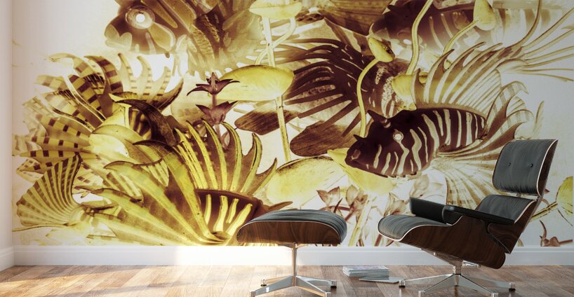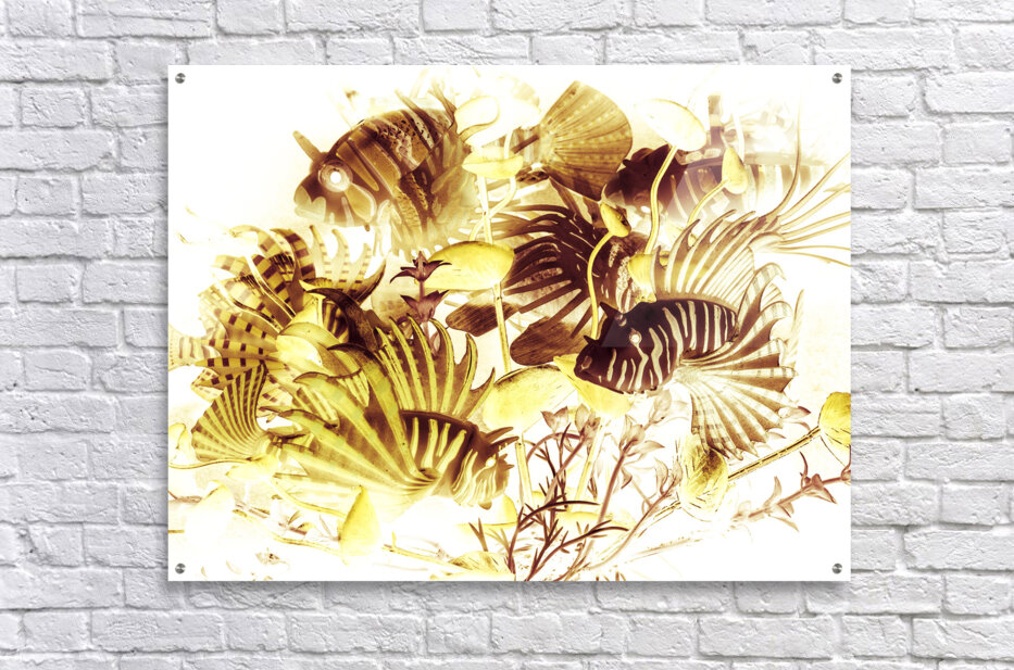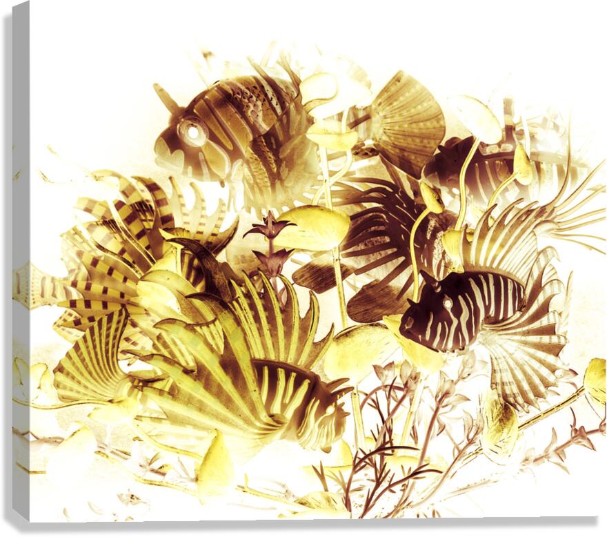 Artistic photography art on a wild array of underwater lion fish in white reeded waters. Tropical reef